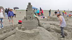 June 28-30, 2024 ~ The annual Five Star Dealership's Sand and Sawdust Festival was held over the last weekend in June. The weather was pleasant with some sun but mostly cloudy and some late rain. There were many people in town. On the Beach, there were sandcastle builders, horse rides, kite flying, and people playing in the waves.